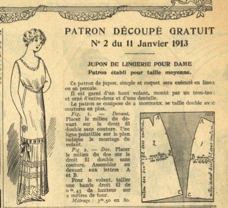 A lace chemise from 1912 and Petticoat, based on a fashion magazine